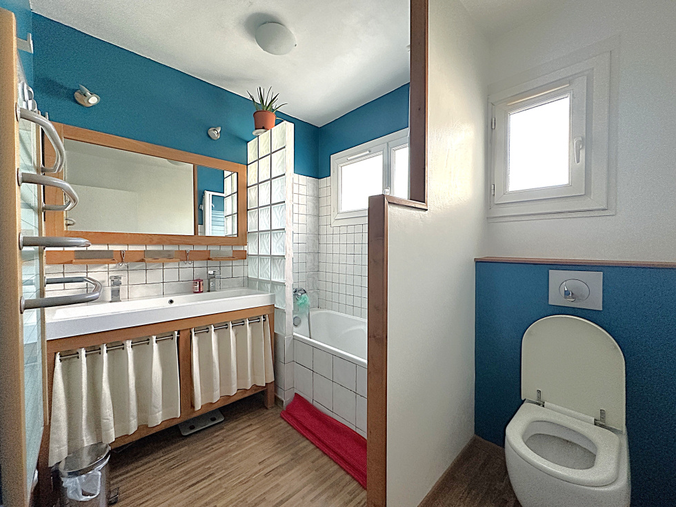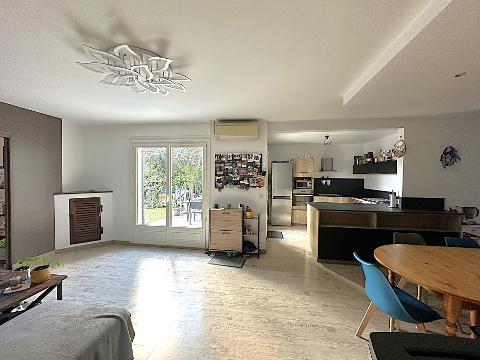 Elle offre un bel espace de vie lumineux de 39 m² avec son espace bureau, une belle cuisine neuve équipée, séparée mais ouverte sur le séjour, donnant tous deux directement sur la terrasse et le jardin, 3 chambres, 1 salle de bains, 1 cellier/buanderie et de nombreux placards. Vous y trouverez également 1 chambre et 1 salle d’eau avec son wc dans un comble aménagé, idéal pour un ado ou vos convives, le tout avec un jardin privatif de 380 m² avec piscine et la possibilité de stationner 2/3 véhicules.