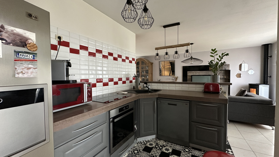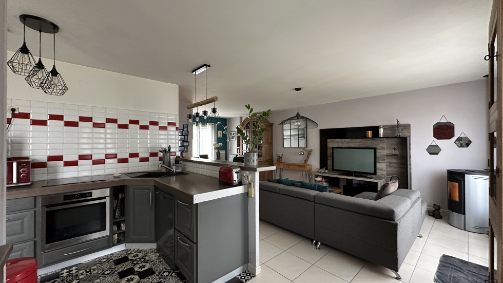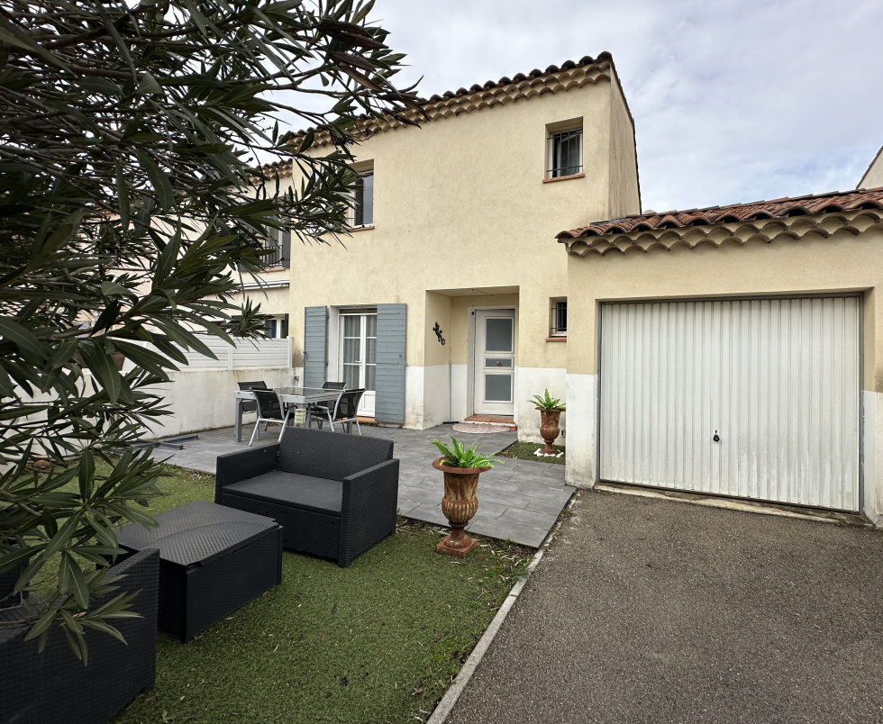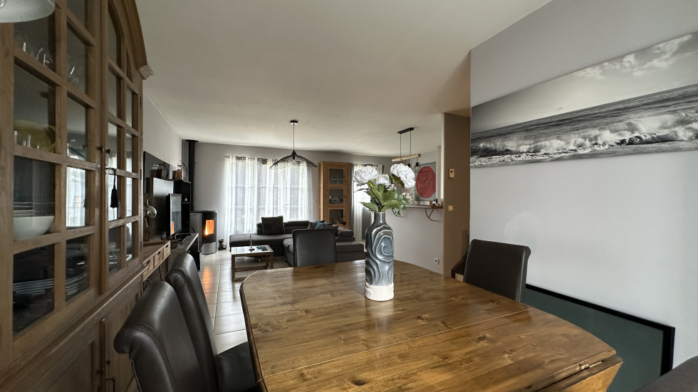Dans un environnement calme et recherché, au cœur d’une résidence sécurisée, découvrez cette charmante maison d’environ 92 m², construite en 2007, idéale pour une famille en quête de confort et de fonctionnalité. Traversante et bénéficiant d’une double exposition, elle offre une luminosité naturelle remarquable tout au long de la journée ainsi qu’un confort thermique appréciable en toute saison. Dès l’entrée, vous profitez de grands placards intégrés optimisant les espaces de rangement. Le rez-de-chaussée s’ouvre sur une agréable pièce de vie composée d’un salon et d’une salle à manger, sublimés par un poêle à granulés apportant chaleur et convivialité. La cuisine ouverte, entièrement équipée, prolonge cet espace et favorise les moments de partage en famille ou entre amis. À l’étage, l’espace nuit se compose de trois chambres lumineuses, dont deux avec placards intégrés, ainsi qu’une salle d’eau moderne et un WC indépendant. Edifié sur 269 m² de terrain (piscinable), vous trouverez deux terrasses, du gazon synthétique facile d’entretien et de la pelouse. Les atouts supplémentaires Garage avec mezzanine et un cellier/buanderie accessible depuis la cuisine. Résidence sécurisée. Proximité immédiate des commerces, écoles et transports. Fonctionnelle, lumineuse et parfaitement entretenue. Cette maison représente une opportunité idéale pour un premier achat ou une vie de famille sereine. À visiter sans tarder !