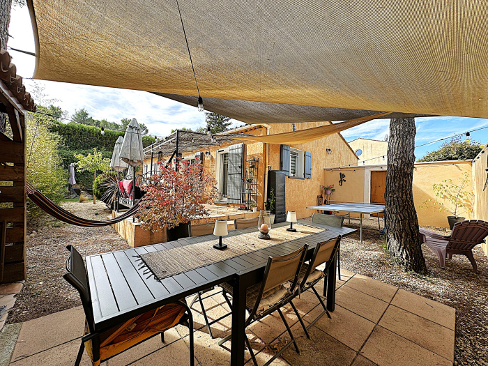 Authentique villa provençale de 5 pièces, d'environ 110 m² habitable, nichée dans un cadre paisible et verdoyant. Elle offre une entrée avec placard, un séjour donnant sur une terrasse, une... Zone...